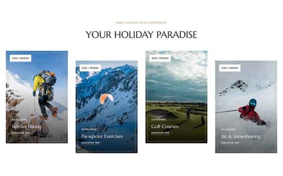 Enjoy Ultimate Alpine Experiences Your Holiday Paradise $180 / Person Outdoors Winter Hiking Discover Trip $180 / Person Outdoors Paraglider Exercises Discover Trip $180 / …