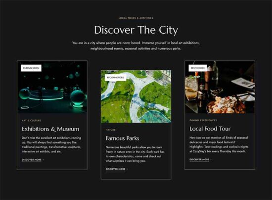 Local Tours & Activities Discover The City You are in a city where people are never bored. Immerse yourself in local art exhibitions, neighbourhood events, …