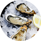 Our selection of fresh oysters, limes.